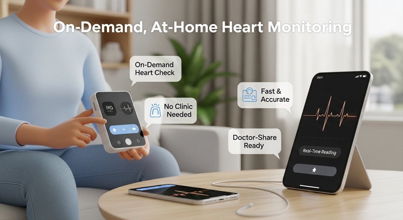 Imagine feeling a sudden flutter in your chest or tightness and instead of panicking, you pull out your portable ECG device and get an instant reading. That’s the power of on-demand monitoring.