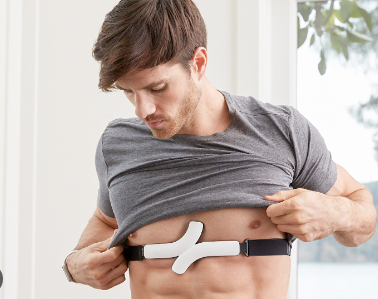 The QardioCore is a chest strap ecg heart rate monitor that continuously monitors your heart and is designed to help you actively manage your heart health. It also works with fitness tracking.